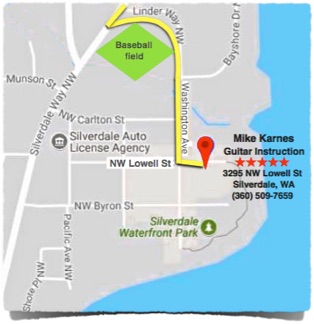 *Students also travel from Bainbridge Island, Bremerton, Gig Harbor,  Kingston, Kitsap, Port Orchard, Poulsbo, Seabeck  and Seattle, Washington to take guitar lessons with Mike Karnes!